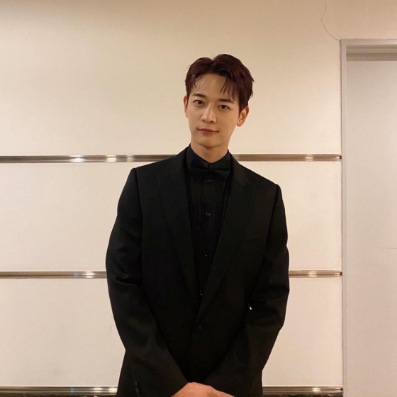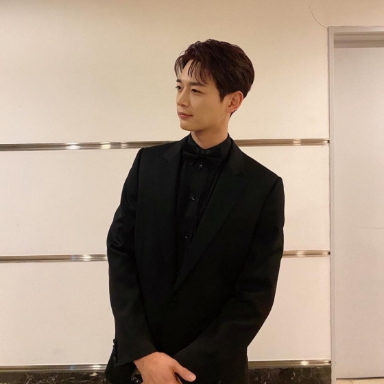 최민호는 청룡영화제 대기실에서 블랙 수트를 갖춰입고 훤칠한 자태를 뽐냈다.