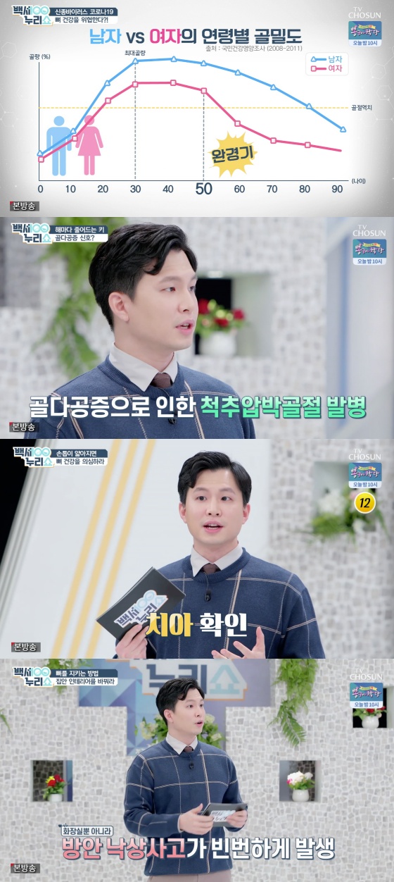 의사 정민규가 '백세누리쇼'에서 골다공증 자가 점검법을 설명했다.