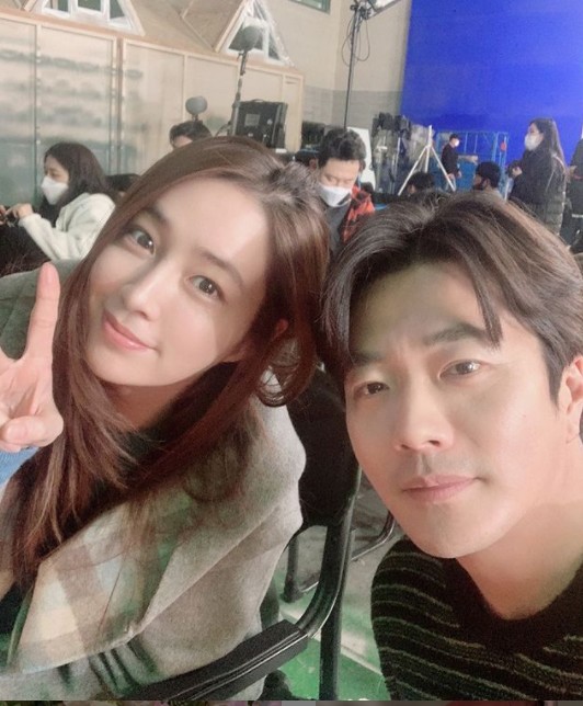 배우 이민정이 권상우와 함께 촬영 중인 영화 현장에서 인증샷을 공개했다.