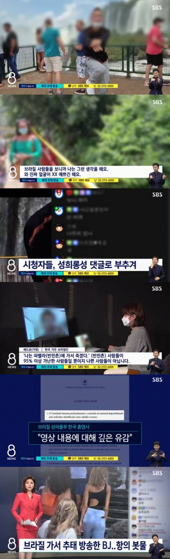 그는 브라질 유명 관광지에서 마스크를 턱에 걸친 채 춤을 추고, 지나가는 현지 여성의 신체를 몰래 촬영하며 "몸매 XX 예쁘다"라고 말하는 모습을 방송으로 내보냈다. 이에 시청자들은 "몸매가", "장난아니네" 등의 성희롱성 댓글을 쏟아내기도 했다.