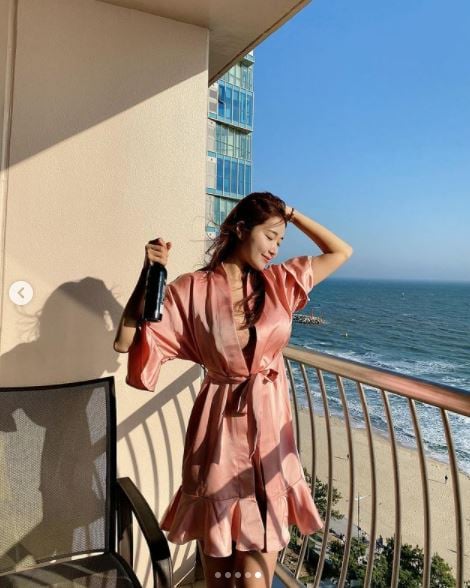 오또맘은 사진에서 속이 훤히 보이는 홈웨어 슬립 가운을 걸치고 섹시한 매력을 폭발하는 모습을 보였다.