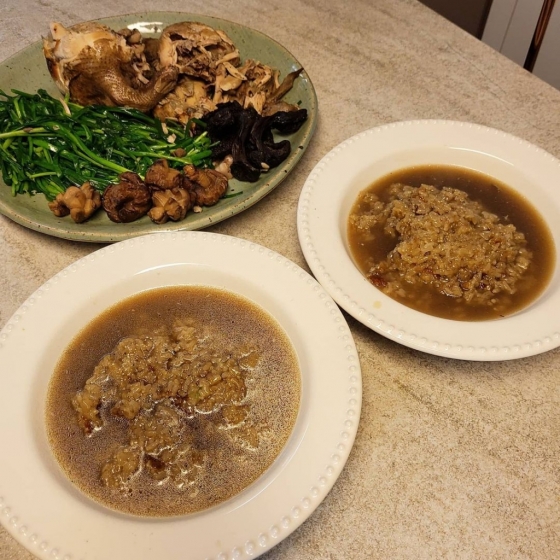 박연수는 12일 자신의 인스타그램에 "오늘 점심 닭백숙♥ 온갖 한방재료 다 넣고 한 시간 푹 삶았어요. 마지막에 우린 국물에 찹쌀 넣어 끓이고 부추 살짝 쪄서 고기에 돌돌 말아 먹이면 너무 잘 먹어요. 국물 한 그릇 원샷하면 만병 통치약!!!"이라며 글을 게재했다.