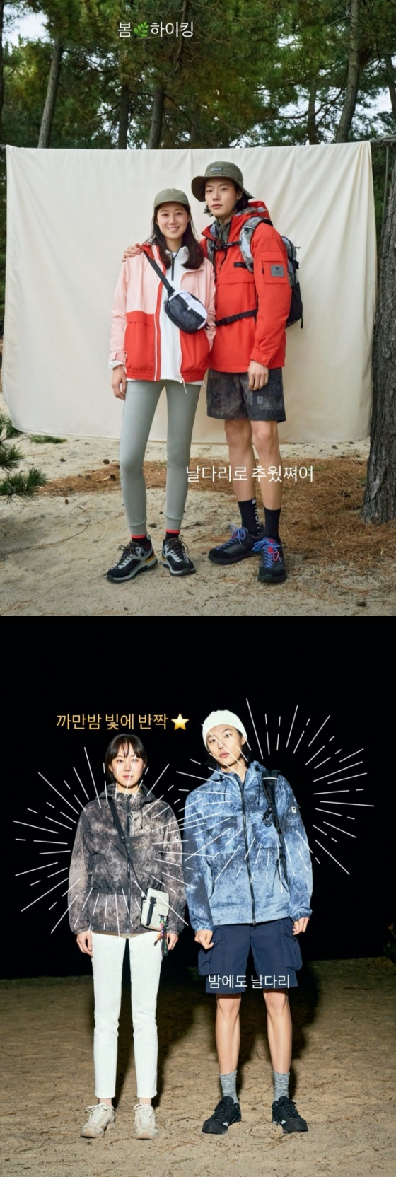 사진 속 공효진은 류준열과 함께 등산복을 입고 있다. 편하게 선 포즈에서도 힙한 분위기가 풍겨져 나온다. 두 사람의 큰 키와 모델 비율은 패션을 완성시켰다.