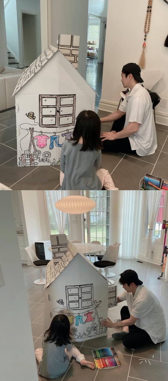 사진 속 권상우는 딸 리호와 함께 작은 집을 짓고 있다. 리호는 옆에서 권상우를 보고 있다. 두 사람의 행복한 시간이 느껴진다.