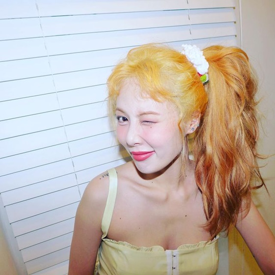 사진 속 현아는 기존 붉은 머리가 아닌 금발로 변신한 모습이다. 노란 민소매 상의와 화사한 메이크업이 봄 분위기를 물씬 풍긴다.