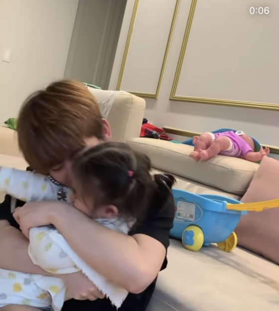 함께 공개된 영상 속에는 진화와 혜정 양이 다정하게 서로를 끌어안고 장난치는 모습이 담겨있다.