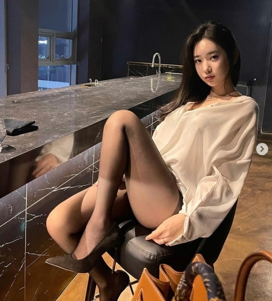 공개 된 사진 속 신재은은 바에 앉아 포즈를 취하고 있다. 하늘거리는 블라우스에 블랙 핫팬츠를 매치했다. 신재은의 아슬아슬한 하의 실종 패션이 시선을 사로잡는다.