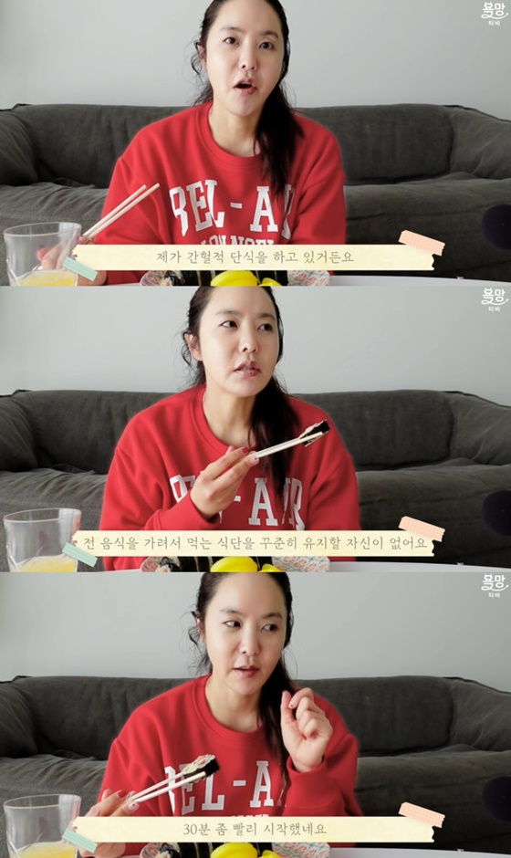 영상 속 박지윤은 제주도에서 유명한 김밥집의 김밥을 점심 식사로 준비, 구매 과정을 설명했다. 김밥 앞에 앉은 박지윤은 "지금 1시 40분인데 오늘 첫끼다. 간헐적 단식을 하고 있다"고 말했다.