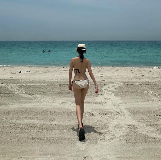 사진 속 효민은 등을 드러내며 엉덩이를 반만 가리는 파격 비키니를 입고 있다. 효민은 몸을 완전히 드러내며 명품 몸매를 자랑했다. 가는 허리와 각선미는 보는 이들의 시선을 끈다.