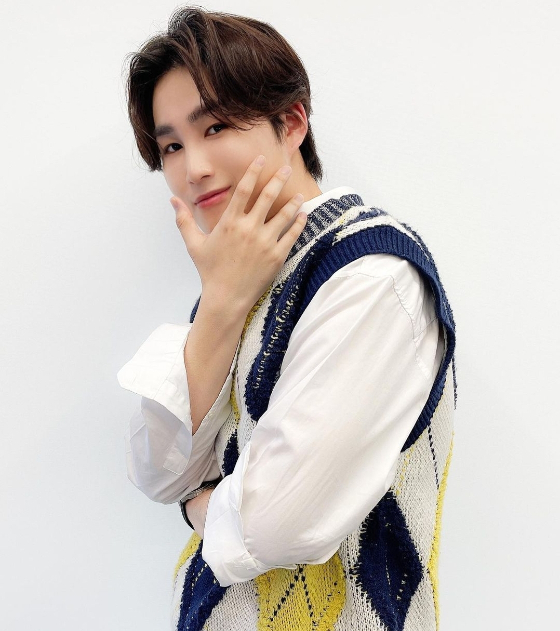 사진 속 김희재는 뽀얀 피부와 청순한 얼굴로 팬들의 시선을 끌었다. 김희재는 셔츠에 니트 조끼를 매치하며 대학생 남자친구 같은 분위기를 연출하기도 했다.