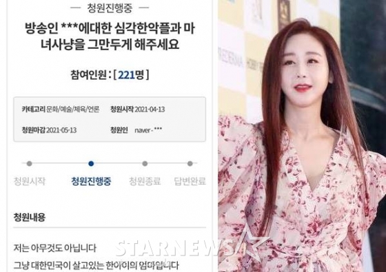 공개된 사진은 청와대 국민청원 게시판에 올라온 글을 캡처한 것. 한 네티즌이 '방송인 함소원에 대한 심각한 악플과 마녀사냥을 그만두게 해주세요'라는 제목으로 청원글을 올렸다.