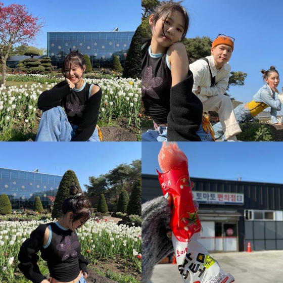 제니가 수목원 꽃을 배경으로 포즈를 취한 사진이 있던 가운데, 스태프와 함께 총 7명이 아이스크림을 들고 모여 촬영한 사진도 있어 눈길을 끌었다.