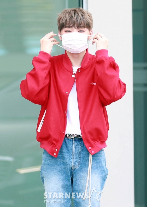 가수 윤지성이 20일 오후 서울 마포구 상암동 MBC에서 진행되는 라디오 '김신영의 정오의 희망곡' 출연을 위해 도착하고 있다.
