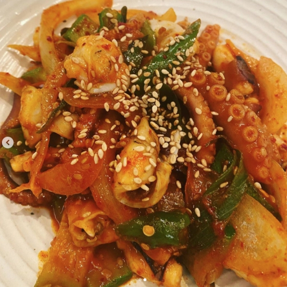 이민정은 지난 24일 자신의 인스타그램에 "오늘 아침은 시원한 #꽃게탕 #낙지볶음"이라는 글과 함께 사진을 공개했다.