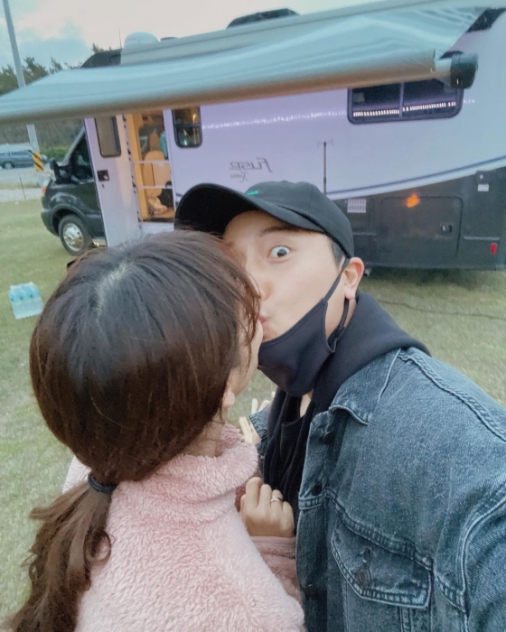 공개된 사진 속 김준희는 비연예인 남편과 캠핑카로 캠핑을 하는 모습. 두 사람은 서로 볼을 맞대는가 하면, 입을 맞추는 모습 등 애정을 과시했다.