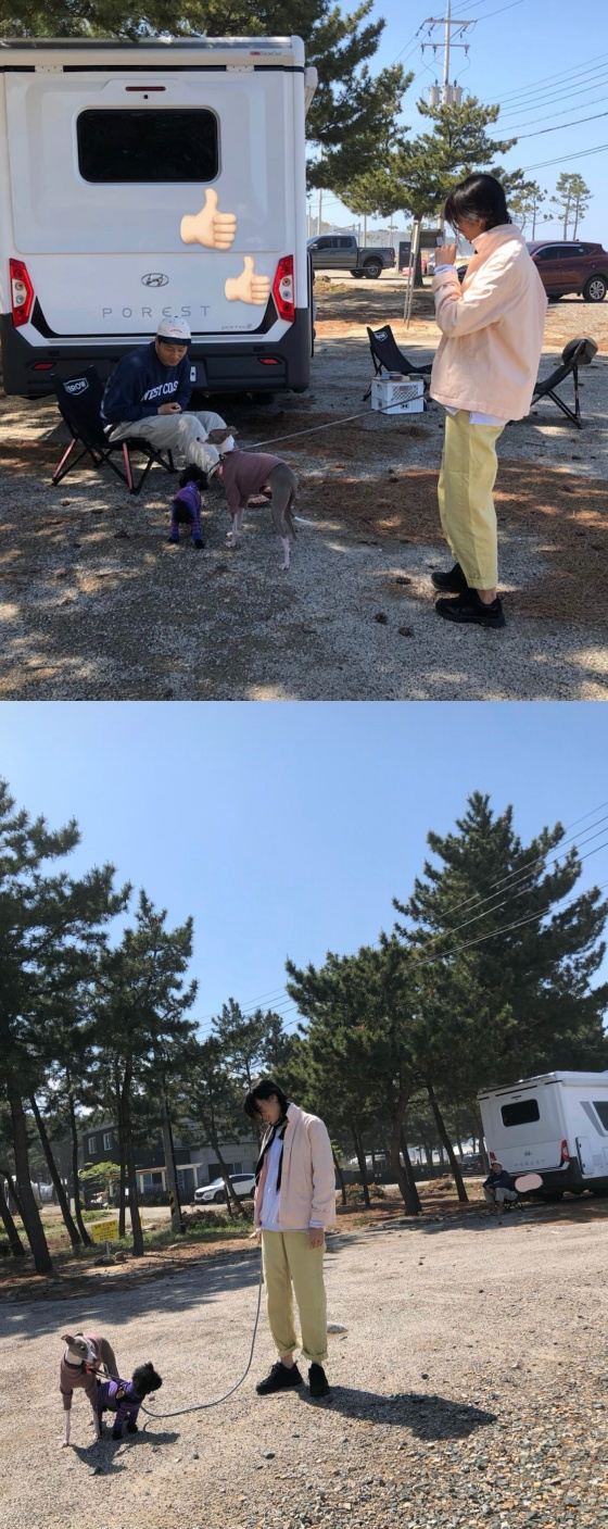 사진 속 공효진은 소나무가 있는 곳에서 반려견과 함께 시간을 보내고 있다. 이천희는 그 풍경을 바라보고 있다. 이천희 뒤에 보이는 캠핑카는 이들이 캠핑하고 있음을 알려준다. 보기만 해도 힐링되는 일상이다.