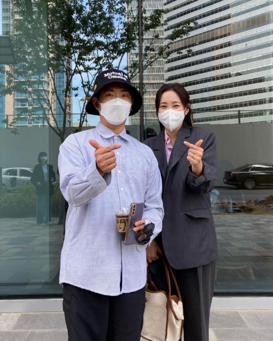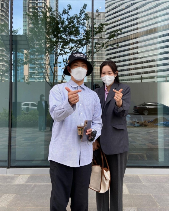 공개된 사진 속에는 최희가 개그맨 이창호를 만나 손가락 하트를 하며 인증샷을 촬영하는 모습이 담겼다. 최희는 단정한 정장 차림, 이창호는 부캐릭터인 그룹 매드몬스터 멤버 제이호의 콘셉트에 맞춰 힙한 버킷햇을 착용한 모습이다.