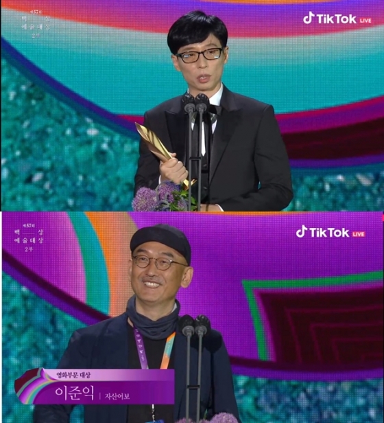 유재석과 이준익 감독은 13일 경기 고양시 일산 킨텍스에서 진행된 제 57회 백상예술대상에서 각각 TV 부문과 영화 부문 대상을 받았다.