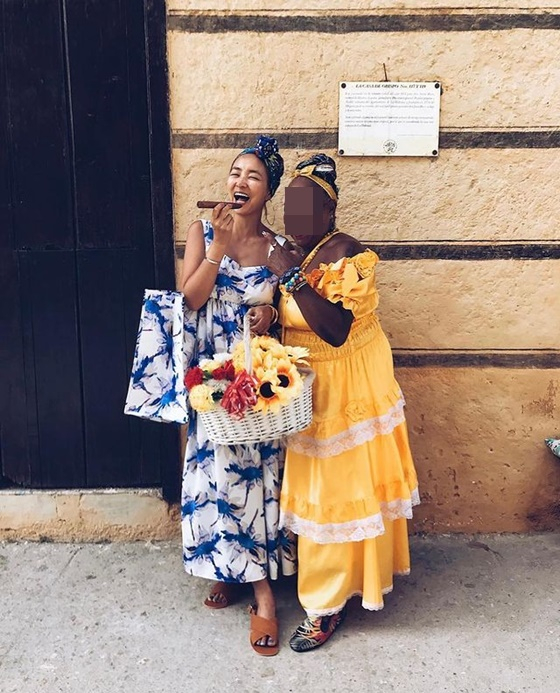 진재영은 "누가 쿠바 여자인지 알 수 없었던 쿠바 여자보다 더 쿠바 여자 같았던 아름다운 쿠바 여행에서 멋진 추억과 함께 저는 기미를 얻었어요"라고 떠올렸다.