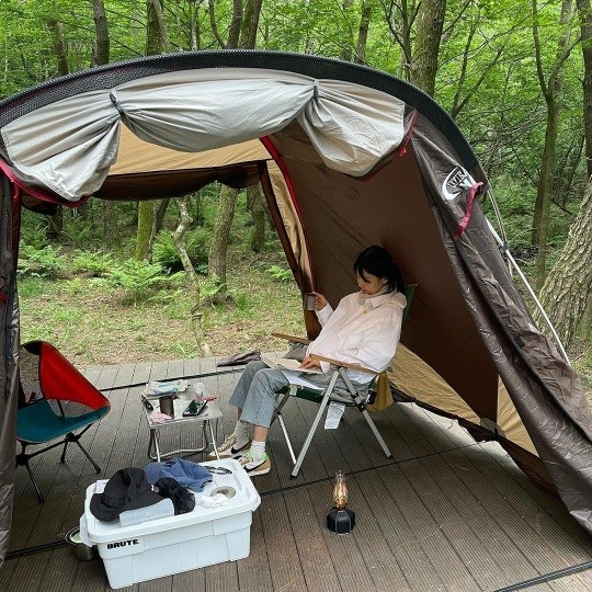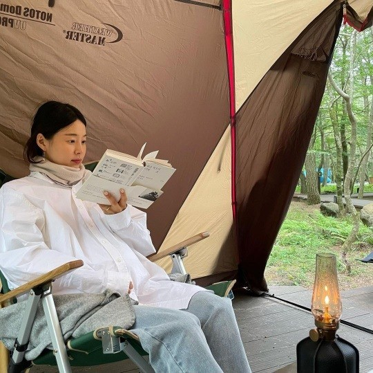 공개된 사진 속 한지혜는 텐트에 앉아 책을 읽으며 휴식을 취하고 있는 모습이다. 특히 한지혜는 만삭임에도 불구하고 부기 하나 없는 미모로 시선을 사로잡았다.