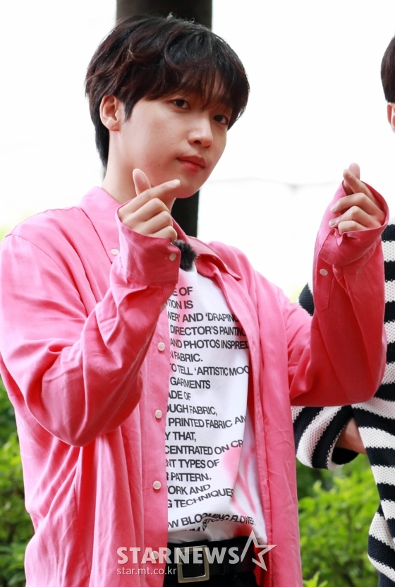 가수 정세운이 21일 오후 서울 강남구 역삼동의 한 음식점에서 진행된 LG U+아이돌라이브 앱 '맛돌라' 녹화에 참석해 포즈를 취하고 있다.