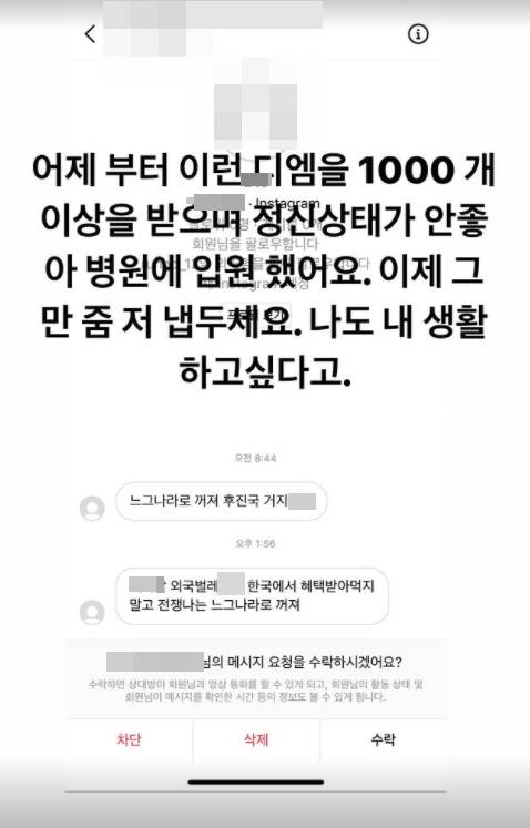 네티즌은 니갸르에게 "너네 나라로 꺼져. 후진국 거지XX"라며 "XXX 외국 벌레X아 한국에서 혜택 받아먹지 말고 전쟁나는 너네 나라로 꺼져"라고 메시지를 보냈다.