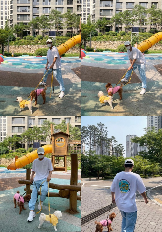 류이서는 4일 자신의 인스타그램에 "아가들이랑 산책. 와, 이제 제법 덥네요"라는 글과 함께 사진을 게재했다.