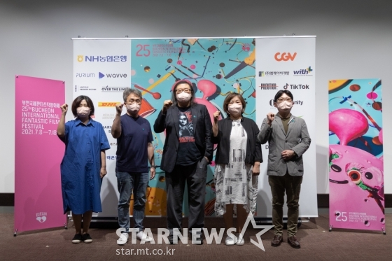 연예방송'25회 BIFAN 화이팅'[★포토]발행 : 2021.06.15 ・ 15:01이동훈 기자15일 오전 경기 부천시 판타스틱 큐브에서 진행된 제25회 부천국제판타스틱영화제(BIFAN) 기자회견에서 김영덕 수석 프로그래머, 남종석 프로그래머, 모은영 프로그래머, 박진형 프로그래머, 김종민 프로그래머 등 참석자들이 포즈를 취하고 있다. /사진제공= BIFAN조직위원회<저작권자 © 스타뉴스, 무단전재 및 재배포 금지>부천판타스틱영화제BIFAN추천 기사이동훈 기자기자홈좋아요 연예-방송의 인기 급상승 뉴스연예-방송의 최신 뉴스