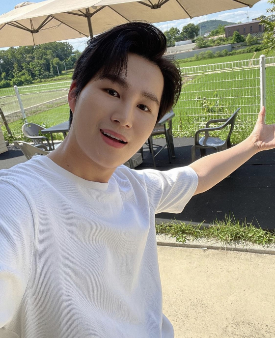 사진 속 김희재는 푸른 하늘과 초록빛 잔디밭을 배경을 셀카를 찍고 있다. 하얀 티셔츠를 입은김희재는 청량한 미모를 뽐냈다. 청순한 김희재의 비주얼이 눈에 띈다.
