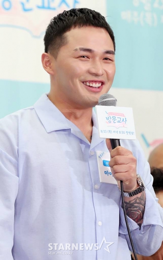 가수 마이크로닷이 21일 오후 서울 마포구 상암 스탠포드호텔에서 진행된 Mnet 예능프로그램 '방문교사' 제작발표회에 참석해 질의응답을 하고 있다. /사진=임성균