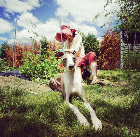 배우 공효진이 반려견과 함께 텃밭을 가꾸는 사진을 공개했다.