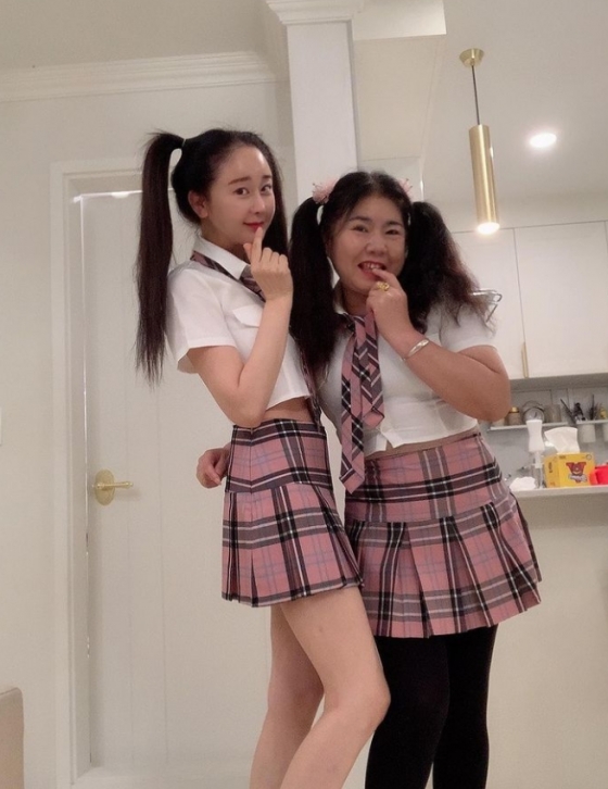 공개된 사진 속 함소원은 '중국 마마'로 불렸던 시어머니와 함께 '아내의 맛' 출연 당시 입었던 교복을 꺼내 입고 카메라를 향해 포즈를 취하고 있다. 두 사람 모두 양 갈래로 머리를 묶고 깜찍한 표정을 짓고 있다.
