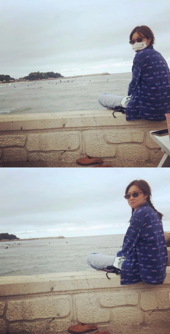 사진 속 공효진은 바다 앞 벽에 앉아 있다. 꾸미지 않은 모습은 공효진의 자연스러운 매력을 더욱 강조했다.