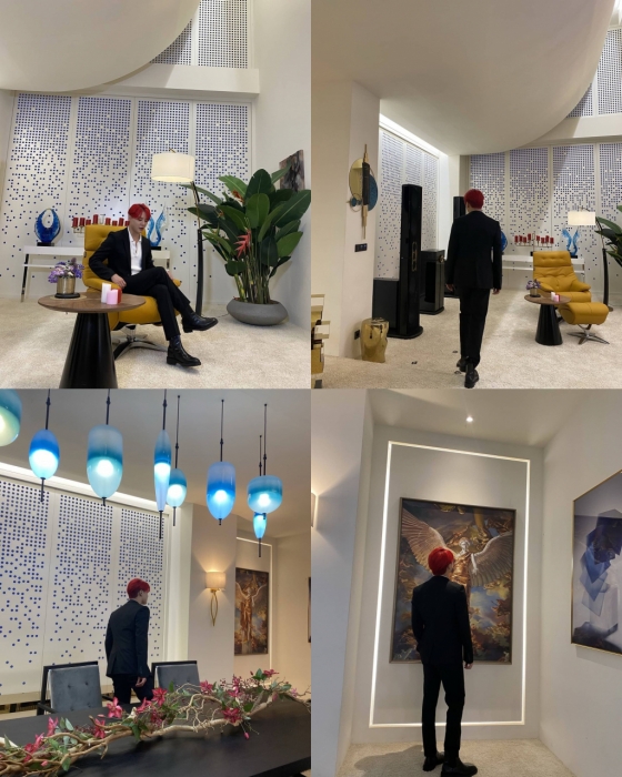25일 오후 김준수는 자신의 SNS에 "#헤라팰리스 견학하느라 정신없는 중.."이라는 글과 함께 여러 장의 사진을 게재했다.