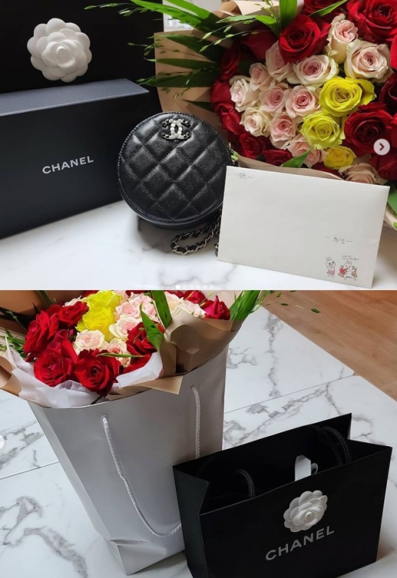 이어 "곧 출산할거라는 선견지명이 있었는지 생일 하루 전날에 깜짝 선물을 준비한 아내바라기"라며 "요즘 핫해서 구하기 힘들다는 동그리백, 장미꽃 37송이 그리고 정성껏 쓴 손편지. 큰 백 밖에 없어서 가볍게 들 수 있는 작은 가방이 있었으면 했는데 넘 예쁜 선물을 받았어요"라고 전했다.