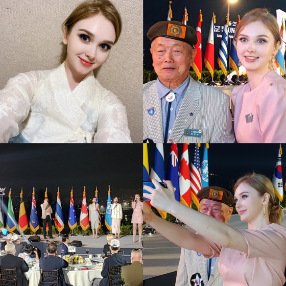 마리아는 "제 친할아버지도 한국전쟁 참전용사이시며 한국에서 가수의 꿈을 이룰 수 있었던 것은 할아버지와 전우분들이 한국을 지켜주신 덕분"이라며 소개와 감사의 인사를 전했다.