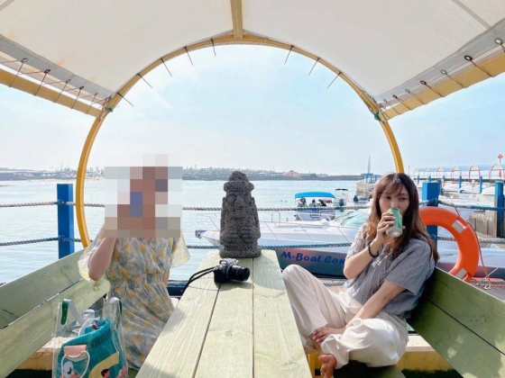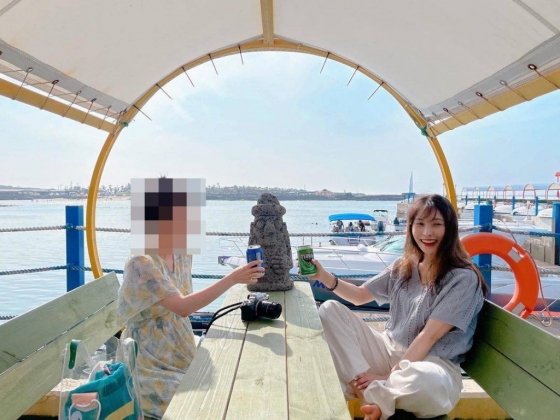 공개된 사진 속에는 박규리가 친구와 제주도에 놀러간 모습. 박규리는 바닷가에서 캔맥주를 즐기며 환하게 웃고 있었다.