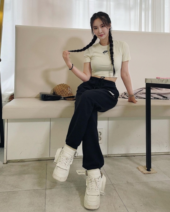 또 다른 사진 속 민영은 잘록한 허리를 드러낸 채 완벽한 몸매를 자랑해 시선을 끈다.