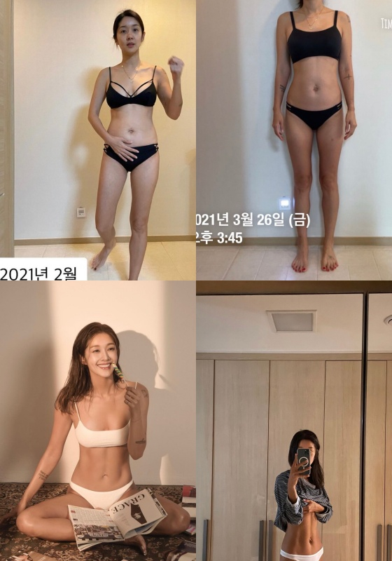 이어 "2월부터 꾸준히 운동을 하면서 일단 기초 체력과 근육량을 조금씩 늘리기 시작했어요. 처음에는 갑자기 운동량이 너무 많고 먹는 양도 많아서 최초 몸무게보다 2-3㎏이 확 찌더라고요. 한 달 정도 운동하고 식단을 안 하고 마음껏 먹었더니 59.7㎏까지 찌는 것을 보고 이건 아니다 싶어서 이렇게 계획을 세웠어요"라고 운동을 시작한 계기를 밝혔다.