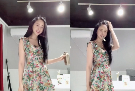 공개된 영상 속 함소원은 컵에 있는 물을 마시며 몸을 흔들고 있다.