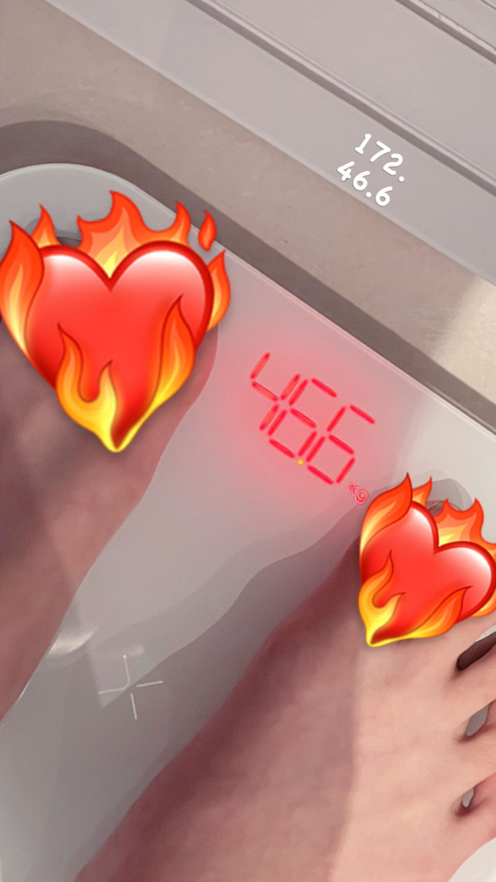 전소미는 24일 자신의 인스타그램 스토리에 "172 46.6"이라는 글과 함께 한 장의 사진을 게재했다.