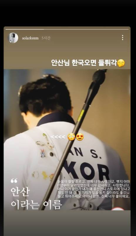 안산은 24일 인스타그램에 솔라의 인스타그램 스토리를 캡처해 올렸다.