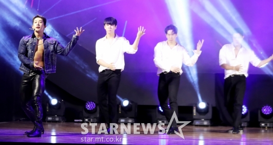 이날 원호는 가죽 팬츠에 청자켓만 걸치고 무대에 올라 탄탄한 상체를 뽐냈다.