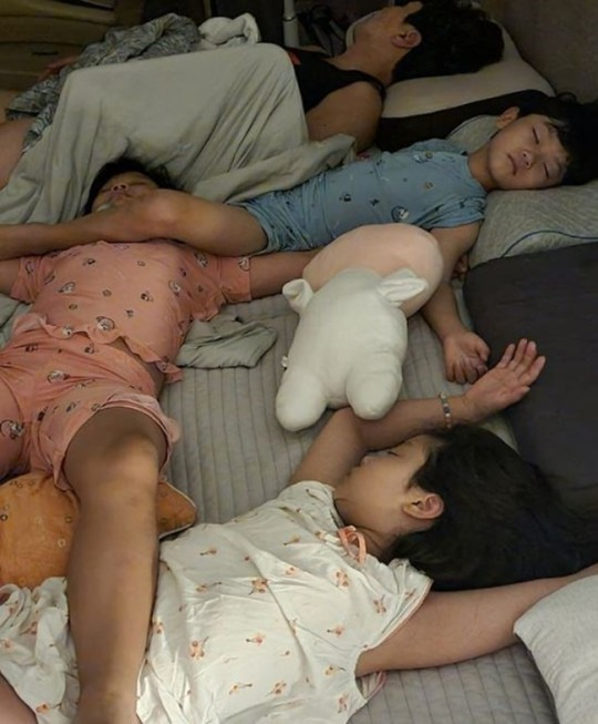 공개된 사진에는 안방에서 잠들어 있는 이동국과 설아, 수아, 대박이(시안)의 모습이 담겨있다. 아빠 옆에서 편하게 잠들어 있는 세 사람은 잘 때도 떨어지지 않는 모습으로 웃음을 안겼다.