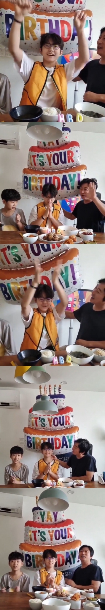 공개된 영상 속 이수근은 둘째 아들 이서준 군과 함께 첫째 아들 이태준 군의 생일을 축하해 주고 있다. 생일밥을 차린 밥상에 풍선 장식이 눈길을 끈다.