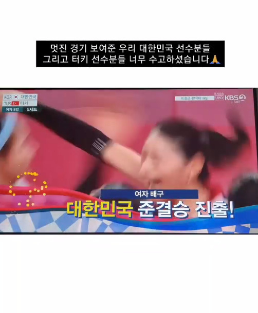 한편 '2020 도쿄올림픽'에서는 오늘(4일) 오전 대한민국 여자 배구 대표팀과 터키가 4강 진출권을 앞두고 경기를 치렀다. 접전 끝, 한국 대표팀은 3대 2로 승리를 거두고 4강에 진출했다.