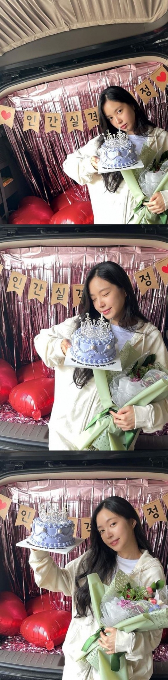 사진 속에는 손나은이 한 손에 케이크를 들고 있는 모습이 담겨 있다.