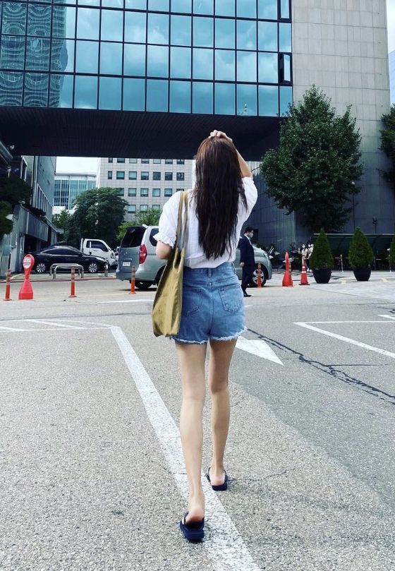 사진 속 김효진은 매끈하고 긴 학다리를 자랑한다. 김효진은 다양한 각도에서 찍은 사진을 올렸지만 어느 각도에서도 살아남으며 명품 몸매를 인증했다.