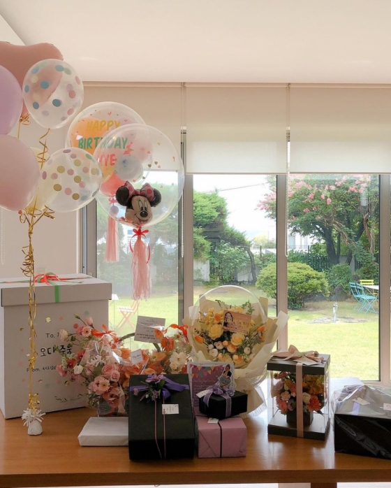 공개된 사진 속에는 서지혜가 팬들의 선물을 받고 인증한 모습이 담겨있다. 다양한 꽃다발과 편지, 선물박스가 있는 가운데, 그의 집 창밖으로 푸른 정원이 가꿔진 마당이 엿보인다.