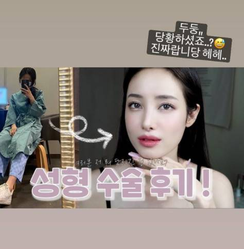 유깻잎은 5일 인스타그램에 "두둥 당황하셨죠..? 진짜랍니당 헤헤"라는 글과 함께 '성형수술 후기' 영상을 홍보했다.